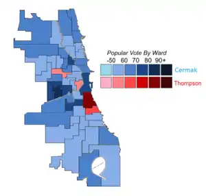 Cermak carried 45 wards, while Thompson carried five.[6] The five wards that Thompson carried all had sizable black populations.[6]