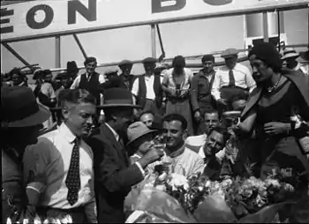 Race day was an extremely hot day.[18] This would cause issues with tar melting, and seeping through the new road-surface.[2] The pre-race ceremonies included Englishmen George Eyston and John Cobb showed off their Land speed record cars. Earl Howe then did a lap in the race-winning car from the previous year. Finally a minute's silence was held to commemorate André Boillot, a top French driver of the post-war period, who had been killed at a hill-climb event just a fortnight earlier.[1][2]