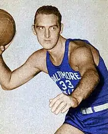After World War II military service, sophomore guards Dan Kraus, Lloyd Potolicchio, and "Miggs" Reilly and sophomore forward Andy Kostecka all returned to play on the 1946-47 team.[17] Junior guard Bob Duffey was killed in action in Germany on November 13, 1944, during his World War II service.[2][18]