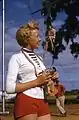 Swimsuits, including the Gottex brand popular in Israel and America, were one- or two-piece; some had loose bottoms like shorts with short skirts.[37] High waisted Bikinis appeared in Europe and the South Pacific islands,[38] but were not commonly worn in mainland America until the late 1950s.[36][39]