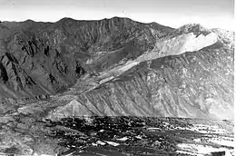 In the area of maximum felt intensity (>IX) most kishlaks were completely destroyed. Most of the fatalities were caused by numerous landslides triggered by the earthquake. The town of Khait (modern spelling Hoit (Tajik: Ҳоит)) and the village of Khisorak were almost completely destroyed by the Khait landslide. Numerous kishlaks in the Yasman River valley were overwhelmed by the loess flowslide the swept down the whole length of the valley. Other kishlaks were destroyed by loess flowslides in the lower Obi-Kabud River valley and on the north side of the Surkhob River valley.[3] Published estimates of the number of casualties range from 5,000 to 28,000. A more recent study, based on the size of affected settlements and the likely population density, gave an estimate of 7,200 of which about 800 were caused by the Khait landslide and 4,000 by the Yasman valley flowslide.[3]