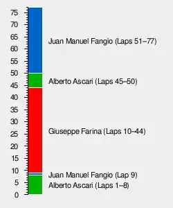 - ^3 — José Froilán González qualified and drove 35 laps of the race in the #14 Ferrari. Alberto Ascari, whose own vehicle had already retired, took over the car for the remaining 42 laps of the race.[6]