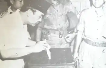 Given the fact that cabinets had fallen after introducing controversial measures, there was reluctance to introduce an election bill and there were concerns about possible political conflicts caused by electioneering.[3] However, many political leaders wanted elections as the existing legislature was based on a compromise with the Netherlands (the erstwhile colonial power) and as such had little popular authority. They also believed elections would bring about greater political stability.[4] The "17 October 1952 affair", when armed soldiers in front of the palace demanded dissolution of the legislature, led to greater demands from all parties for early elections. By 25 November, an elections bill had been submitted to the People's Representative Council. After 18 weeks of debate and 200 proposed amendments, the bill passed on 1 April 1953 and became law on 4 April. It stipulated one member of the legislature for 150,000 residents and gave the right to vote to everybody over the age of 18, or who was or had been married.[5] Once the bill had passed the cabinet began appointing members of the Central Electoral Committee. This was to have one member from each government party and an independent chairman. However, the Indonesian National Party (PNI) protested that they had no members on the committee, and this dispute was still unresolved when the cabinet fell on 2 June.[6]