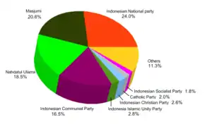 | Communist Party (PKI) | 6,176,914 | 16.4 | 39 |