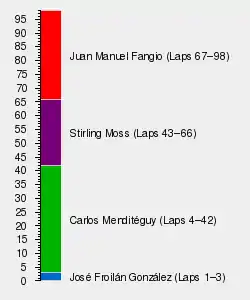 - Car #34: Luigi Musso (30 laps) and Juan Manuel Fangio (68 laps). They shared the 8 points for first place.