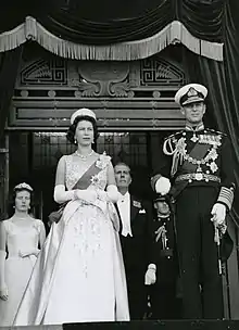 The Queen and the Duke of Edinburgh at the State Opening of Parliament in Wellington during their 1963 visit to New Zealand