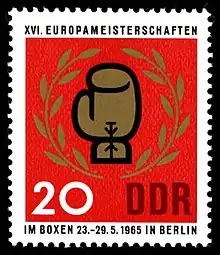 An East German stamp dedicated to the 1965 European Amateur Boxing Championships