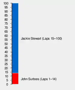 John Surtees (laps 1–14), Jackie Stewart (15–100)