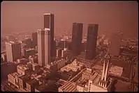 The mayor's office prepared a report in the aftermath of the smog, singling out the coal-burning Consolidated Edison company, city buses, and apartment building incinerators as significant contributors to air pollution.[71] The report noted that the change in weather that dispersed the smog "spared the city an unspeakable tragedy," and that if New York City had stagnant smog at the high levels commonly found in Los Angeles, "everyone in the city would have long since perished from the poisons in the air."[73] Consolidated Edison began using a fuel with lower sulfur content, and by June 1969 the city had reduced the level of sulfur dioxide in the air by 28 percent.[69]