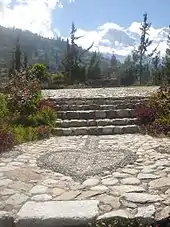 Debris-flow deposits of Holocene origin make up the Río Llanganuco alluvial fan and underlie the Río Santa bed for depths of hundreds of metres in places, indicating that such flows have occurred here regularly for thousands of years.[1] Geologic evidence indicates that Yungay itself was "probably built on a flow or avalanche deposit."[6] The name of nearby Ranrahirca village means "pile of thrown stones" in Quechua, suggesting that debris avalanches have been observed in the valley since ancient times.[7] These destructive flows of snow, ice, mud and rock are locally termed huaycos.[8]:426