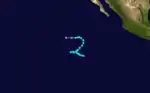 On September 7, a large area of thunderstorms was identified southwest of Mexico. Over the following two days, the system gradually organized as it moved northwest and was declared a tropical depression on September 9. Upon being classified a depression, the storm acquired a more northerly track and soon attained tropical storm status. The newly christened Tropical Storm Norma maintained a general northward track towards Mexico.[2] On September 10, Norma briefly strengthened into a hurricane, with peak winds estimated at 75 mph (120 km/h) before making landfall west of Acapulco.[1][6] Within hours of moving onshore, the storm rapidly deteriorated and dissipated later that day.[2]