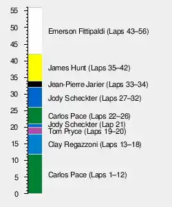 - Carlos Pace – 17 (1–12, 22–26)
