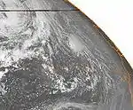 Six hours after being named, Irma reached its peak intensity of 50 mph (80 km/h).[63] On October 5, Irma turned towards the north-northeast and passed about midway between the central and western Azores.[61] Shortly thereafter, Irma became less organized,[64] and that evening was absorbed into an approaching cold front, about 450 mi (720 km) northeast of the Azores.[65] Although Irma passed near parts of the western and central Azores with gale-force winds in some areas, no reports of damage or casualties caused by Irma were received. Several nearby ships reported winds around 46 mph (74 km/h). It was noted that heavy rains may have occurred on some of the mountainous islands as Irma passed.[61]