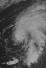 The origins of Tropical Storm Irma were from a subtropical depression that formed about 500 mi (800 km) south of the Azores on October 2. During the next two days, thunderstorm activity gradually increased around the circulation center as the storm drifted northward. On October 2, the storm had taken the appearance of a tropical storm on satellite photographs, and upper-level anticyclonic flow over the center of the storm was evident on satellite time-lapse movies. By the afternoon of October 4, the system had acquired the characteristics of a tropical storm and was named Irma; gale-force winds extended 150 mi (240 km) from the center of circulation.[61][62]