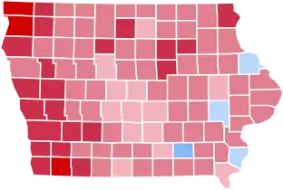 Iowa was won by former California Governor Ronald Reagan (R) by a comfortable margin of about 13 points.[1] As of the 2020 presidential election, this is the last Presidential election in which a Republican has won Iowa by more than 10 points, as well as the last time a Republican won Polk County,[2] home to Iowa's capital and most populated city, Des Moines. It was also the last time until Donald Trump in 2016 that a Republican presidential candidate won the following counties: Boone, Cerro Gordo, Lee, Webster and Worth.[2]