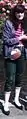 - The Blitz Kids described the movement as a retaliation to punk[68] due to it becoming too violent and unsavory crowds such as neo-Nazis and skinheads deciding to jump on that aesthetic bandwagon.[64] It was also a way to forget their relative poverty following the economic recession and the Winter of Discontent.[68] Features of New Romantic clothing varied from individual to individual, although these generally highlighted the implied individualism, creativity and self-expression of the movement, besides its continued adherence to the DIY ethic of punk.[64] It was inspired by different cultures and time periods, films, film noir, and theatricality. Men often wore dramatic cosmetics and androgynous clothing, including ruffled poet shirts, red or blue hussar jackets with gold braid, silk sashes, tight pants, shiny rayon waistcoats, and tailcoats based on those worn during the Regency era. Women, too, were very theatrical in terms of makeup and style, and often favoured big hair, fishnet gloves, corsets, crushed velvet, and elements of Middle Eastern and gypsy clothing.[65]