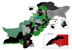 ![]() Map of Pakistan showing National Assembly Constituencies and winning parties | |||||||||||||||||||||||||