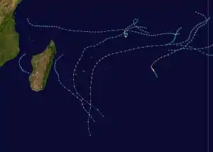 | Jourdanne | April 2 – 10 | Intense Tropical Cyclone | 165 km/h (105 mph) | 930 hPa (27.46 in Hg) | ||||