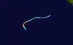 In addition to the 11 named storms, one of which failed to attain tropical storm status, there were several additional systems. The first was Tropical Depression C1, that originated from the ITCZ in the northeastern portion of the basin from a small area of convection on November 24. It moved westward with pulsating convection around the center, failing to organize due to the presence of wind shear. On December 4, the system organized into a tropical disturbance, and three days later it passed about 400 km (250 mi) north of the northern tip of Madagascar.[4] That day, it intensified to tropical depression status, reaching peak winds of 50 km/h (30 mph).[20] Increased wind shear weakened the convection, and the circulation dissipated on December 10.[4] On December 18, a tropical low developed in the Australian basin northeast of the Cocos Islands. It moved southwestward, intensifying into a tropical storm and being named Ken by the BoM. Wind shear in the region prevented much development, and the storm crossed into the south-west Indian Ocean on December 21.[21] At that time, the MFR classified the system as Tropical Depression C2, but the agency only issued two warnings.[4] The JTWC tracked the system until December 23 when the system dissipated well to the southwest of Indonesia.[6]