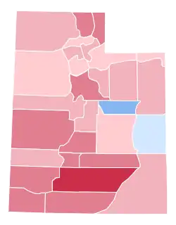 | Utah | 61,398 | 56.76% | 14,090 | 13.02% | 24,558 | 22.70% | 7,410 | 6.85% | 722 | 0.67% | 36,840 | 34.05% | 108,178 |