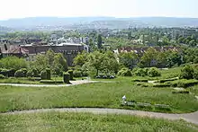Two main issues dominated the garden show at Wartberg, the preservation of an intact environment and the commitment to the concerns of people with disabilities. The land at Wartberg slopes were re-parceled. 40 permanent allotments resulting from this measure. The 3.5-kilometre-long (2 mi) network of paths had a width of 5.5 m (18 feet). To remain true to the premise of a responsible treatment of nature, the initiators came regarding the path width that only 3.5 m (11 feet) were asphalted. The edges of one meter width were gravelled.[3]