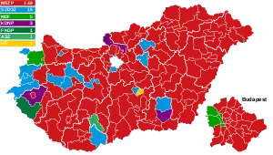 | Hungarian Socialist Party | 1,689,081 | 31.3 | 149 | 1,781,867 | 33.0 | 53 | 7 | 209 | +176 | |