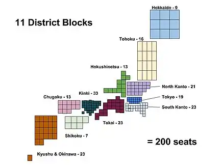 Finally, on January 29, 1994, the parties agreed upon and passed the electoral reform law. This law changed the electoral system from having 130 MMD and 511 seats to the new system of 300 SMD seats elected through plurality voting, and 200 proportional representation seats elected from eleven regional blocs.[4]
