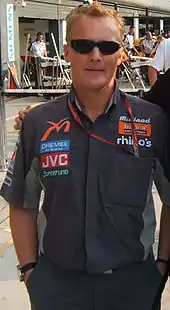 Heading into the new season, attention also focused on the McLaren team and its driver Nigel Mansell. He was initially announced as the partner of Mika Häkkinen; however, a week before the first race, McLaren announced that Mansell would not compete in the first two races of the new season, as he could not fit into the MP4/10 car.[16] Mansell's arrival at McLaren was due to demand from the team's sponsors, including Philip Morris, whose brand, Marlboro, was on the car, who wanted to enjoy the publicity associated with the 1992 World Champion's return even if it meant him performing worse than teammate Häkkinen.[17] His place at McLaren for the first two races was taken by the team's test driver, Mark Blundell, as McLaren worked to build a wider monocoque to accommodate Mansell.[13][16] McLaren were also concerned about the standard refuelling equipment provided for 1995 by suppliers Intertechnique, having suffered a major leak in a test of the new rig outside of its factory. Intertechnique had redesigned the fuel equipment, which was used by all of the teams, in the wake of a pit lane fire suffered by driver Jos Verstappen during the previous year's German Grand Prix.[9] The new fuel rigs, in addition to being half the size of the 1994, also featured longer nozzles, and were designed to lock onto the car before any fuel could begin to flow.[18] Intertechnique traced the problem to a faulty valve within the equipment, which caused 10 kilograms (22 lb) of fuel to leak, and modified the parts accordingly.[19] Intertechnique and the FIA advised the teams to refuel the cars slowly and carefully during pitstops to avoid any further leaks, a situation that was considered unsatisfactory by many of the team principals and mechanics.[20] A new regulation for 1995 also mandated the teams' fuel suppliers to send samples of their fuel to the FIA prior to each Grand Prix, which the governing body would use as a reference when conducting fuel tests at the event itself. Thus only fuel approved by the FIA in advance was allowed; any deviations from the samples on file was not permitted. As before, all cars were subject to routine fuel tests as part of the scrutineering process throughout the weekend to ensure compliance with the sport's technical regulations.[21] The rule change had been proposed by the Elf oil company in 1993 and unanimously supported by the other F1 suppliers in order to speed up the fuel-testing process.[22]