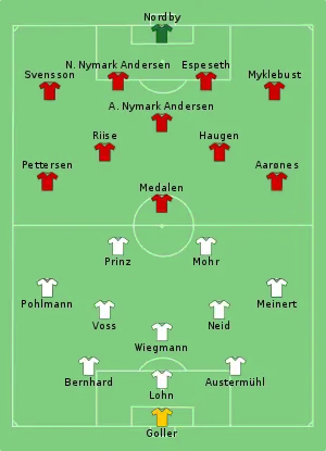 The match was contested by 1991 finalists Norway, who had defeated previous winners the United States, and Germany, who had defeated China in the semi-final.[3]
