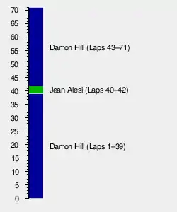 Damon Hill, who loved driving in the rain, took the lead and won the race under these difficult conditions with a comfortable winning margin of 17 seconds. São Paulo saw the 15th GP victory of Damon Hill, who thereby outperformed a record established by his father Graham Hill, who had won 14 races.