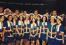 Then the oaths were given. US Basketball athlete Teresa Edwards gave the Athletes' Oath on behalf of all athletes. Then diving official Hobie Billingsley delivered the officials' oath.