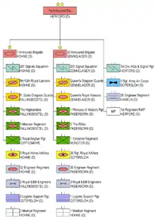 The 1st Armoured Division was constituted as follows and shows some of the changes that were made to British armoured formations during the war.[15][16][17]