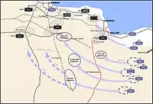 - By September the Italians had attacked and taken Sollum, Halfaya Pass, and Sidi Barrani and dug in around Sidi Barrani and established several fortified campsin the area, stopping eighty miles west of the British defences at Mersa Matruh.[25]