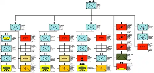 The 1st South African Infantry Division was an infantry division of the army of the Union of South Africa. During World War II the division served in East Africa from 1940 to 1941 and in the Western Desert Campaign from 1941 to 1942. The division was disbanded on 1 January 1943, for conversion into what would become the 6th South African Armoured Division. The division was also briefly active after the war from 1 July 1948 to 1 November 1949.[1]