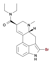 2-Bromo-LSD, also known as BOL-148, is a derivative of lysergic acid invented by Albert Hofmann, as part of the original research from which the closely related compound LSD was also derived. 2-bromo-LSD was found to be inactive as a psychedelic and so was comparatively little researched for many years, although its similar behavior in the body made it useful for radiolabelling studies. It was found to bind to many of the same receptors as LSD, but acting as a neutral antagonist rather than an agonist. However its generally similar behavior to LSD in some respects has shown to be very useful in one specific area, the treatment of cluster headaches. These debilitating attacks have been known for some time to be amenable to treatment with certain hallucinogenic drugs such as LSD and psilocybin, but because of the illegal status of these drugs and the kind of mental changes they induce, research into their medical use has been slow and therapeutic application limited to very specific circumstances under strict supervision. It had been thought that this specific therapeutic action against cluster headaches was limited to hallucinogenic drugs of this type, and would always present a major barrier to their clinical use. However a serendipitous discovery found that 2-bromo-LSD is also able to produce this therapeutic effect, despite lacking the other effects of LSD. This has led to a resurgence of interest and research into 2-bromo-LSD and its possible medical uses. Some isolated incidents of hallucinogenic responses have been reported, but as with other non-hallucinogenic LSD analogues such as lisuride, this appears to be a rare side effect occurring only in individuals with an as yet unexplained susceptibility to this reaction.[3][4][5][6][7][8][9][10][11]