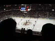 The 2003 NHL Entry Draft was held in Nashville, Tennessee on June 21–22, 2003. The Flames selected nine players in the draft.[22] Calgary selected offensive minded defenceman Dion Phaneuf with their first pick, ninth overall. Phaneuf's coach with the Red Deer Rebels described him as being a physical player on draft day. "This kid doesn't hit to hit. He hits to hurt. It's a mind-set that's rare in the game. At any level. You can't teach it, you can't fake it. You're either born with it, or you're not."[23] Phaneuf quickly made an impact in the NHL, scoring 20 goals as a rookie in 2005–06, earning a nomination for the Calder Memorial Trophy as top rookie.[24] Phaneuf was nominated for the Norris Trophy as top defenceman in 2007–08, just his third year in the NHL.[25]