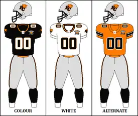 The 2003 BC Lions finished in fourth place in the West Division with an 11–7 record, but they made the playoffs because of the "cross-over" rule. They appeared in the East-Semi Final. The Lions wore orange alternate uniforms c. 1954 to celebrate the team's 50th season.