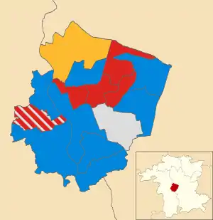 The results saw the Conservatives achieve a majority on the council after winning 18 of the 35 seats.[4] Labour remained on 10 seats while the Liberal Democrats gained 1 to hold 3 seats.[4]