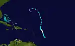In the Caribbean, Cuba suffered the effects of Dennis and Wilma. The former killed 16 people and left US$1.4 billion in damage when it struck Cuba twice.[47] Later, Wilma flooded parts of western Cuba, leaving US$704 million in damage.[47] The island of Hispaniola experienced Dennis in July, which killed 56 people in Haiti.[48] Emily killed one person and left US$111 million in damage when it struck Grenada,[49] and later it killed five people on Jamaica.[40] Collectively, Dennis and Emily caused about US$96 million (J$6 billion) in damage to Jamaica.[50] Wilma killed 12 people in Haiti and one in Jamaica.[46] Alpha killed 26 people in the Caribbean.[51] In Central America, Beta killed nine people and caused US$11.5 million in damage when it struck Nicaragua in October.[52][53][54][55][56][57][58][59] In November, Tropical Storm Gamma killed two people in Bequia in the Grenadines, 34 people in Honduras, and 3 in Belize.[60][61]