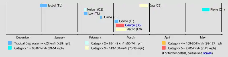 | 8 systems | 30 December – 21 May | 205 km/h (125 mph) | 902 hPa (26.64 inHg) | 3 | |||||