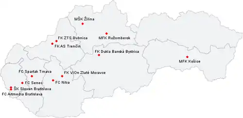 Location of teams in 2007–08 Corgoň Liga