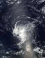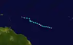 An area of disturbed weather east of the Windward Islands was designated Tropical Depression Six on August 31. Early on September 1, it was named Tropical Storm Felix, and it was upgraded to a hurricane later that day. Tracking generally westward, it rapidly intensified to Category 5, and after fluctuating in strength, made landfall on Nicaragua with 160 mph (260 km/h) winds. At least 133 deaths and more than $50 million (2007 USD) in damage have been attributed to Felix.[36] With Felix, the 2007 Atlantic hurricane season became the first known to include two hurricanes making landfall at Category 5;[37] hurricanes Irma and Maria made landfall at Category 5 intensity during the 2017 Atlantic season.
