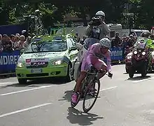 The Giro began with a team time trial on the island of Sardinia. The winning team was Liquigas, but due to unusual stage-ending tactics, it was Enrico Gasparotto and not team leader Danilo Di Luca who took the first pink jersey.[30] Gasparotto faced intense questioning from his teammates and the media after not yielding first position to his team's captain, as is usual practice in a team time trial.[31] Gasparotto yielded the jersey to Di Luca after stage 2, when Di Luca finished higher-placed in the mass finish,[32] but took it back again after stage 3 when he contested the sprint and finished eighth.[33] Finally, after stage 4, the six-way tie involving the Liquigas riders who finished together in the team time trial was broken, as Di Luca won the stage into Montevergine and took the pink jersey again.[34]