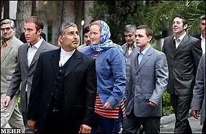 Some sections of the British press reacted angrily to the Iranian television footage of the detainees, particularly the prominence of servicewoman Faye Turney, and that she was seen wearing a head scarf.[55] According to Iranian laws, all females above the age of 13 are required to observe the Islamic dress code of Iran.[56]