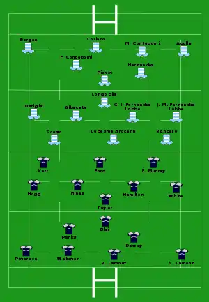| Try: Longo Elía 33' c Con: F. Contepomi (1/1) Pen: F. Contepomi (3/4) 23', 29', 43' Drop: Hernández (1/4) 54' |