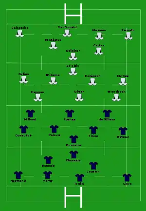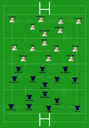 | Try: Poitrenaud 69' c Con: Beauxis (1/1) Pen: Élissalde (1/1) 18' |