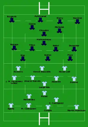 Report | Try: F. Contepomi (2) 28' c, 77' c Hasan 32' c Martín Aramburú 53' m Corleto 65' m Con: F. Contepomi (3/5) Pen: F. Contepomi (1/1) 21' |