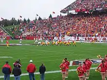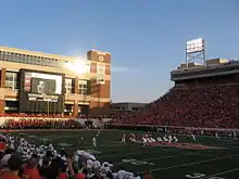 Following the final home game of 2006, construction workers demolished the north end of Darrell K Royal-Texas Memorial Stadium. This section was rebuilt to make the lowest seats closer to the field while planning for luxury boxes and an upper-deck.[44] The lower deck was ready for 2007, while the upper deck and luxury boxes are planned to be ready for 2008.[44] The modifications put the north end zone seats thirty yards closer to the field of play. This results in several game day changes, such as Smokey the Cannon moving to the south end-zone near Bevo.[45]