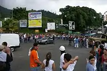 Many voters abstained in the vote, rather than cast a "No" vote against Chávez.[8][9] The student movement played a crucial role in consolidating this position[10] and in organizing numerous rallies.[5][11] The student movement has played a large role in the Venezuelan political process, having gained a prominent position during the RCTV broadcast license expiration protests.[12] Although the student movement is not limited to the opposition,[13] it has been the opposition students that have gained the largest support, in part because they are not officially affiliated with any political cadres.[8]
