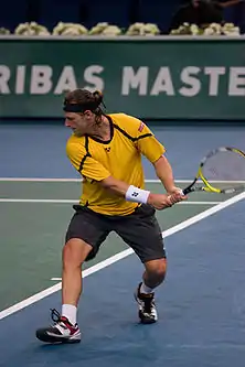 As the final tournament of the season before the Tennis Masters Cup, several players battled for the remaining spots at the year-end singles event, which plays host to the world's top eight players. Coming into the tournament, twelve players were vying for the final three spots (in descending order of race ranking): Andy Roddick, Juan Martín del Potro, Gilles Simon, David Ferrer, James Blake, Stanislas Wawrinka, Jo-Wilfried Tsonga, David Nalbandian, Fernando Verdasco, Gaël Monfils, and Robin Söderling.[3] Roddick was the first to qualify, when he defeated Madrid Masters runner-up Gilles Simon in the third round.[4] The semifinals wins of Nalbandian over Nikolay Davydenko and Tsonga over Blake assured del Potro of a place, with the championship match set to decide the final qualifier.[5] Home favorite Jo-Wilfried Tsonga eventually defeated defending champion David Nalbandian in three sets, to move to the eight place in the ATP Race, and qualify for the year-end championships.[6]